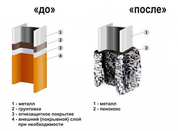 Нагрев металлических сооружений в условиях пожара зависит от множества факторов, среди которых основными являются интенсивность огня и способы теплозащиты металлоконструкций. блокируя тепловой поток от огня к поверхности Конструкции без огнезащиты деформируются и разрушаются под воздействием напряжений от внешних нагрузок и температуры. Огнезащитный вспученный слой, конструкций, предохраняет ее от быстрого прогревания и позволяет сохранить несущую способность в течение заданного времени.